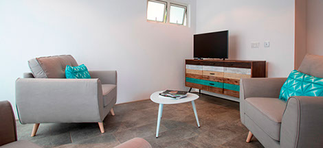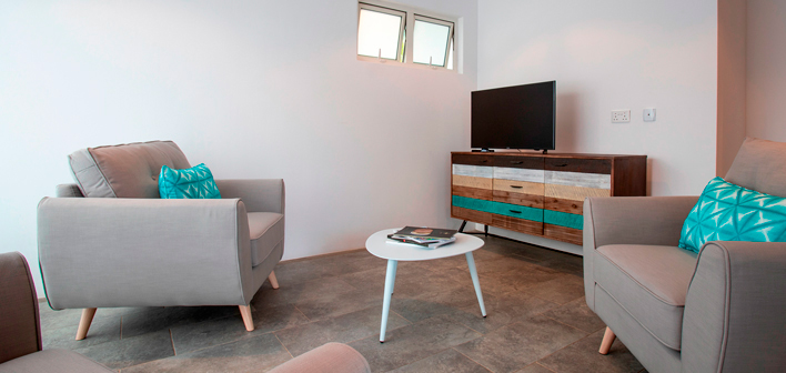 La Tourelle is a 3 bedroom unit on the first floor that has a shared lobby with each room having ac, ceiling fan, tv and their own private bathroom/toilet. One room overlooks the beautiful tropical garden and has a Seaview while the 2 others have their terrace on the back of the hotel facing La Tourelle Mountain. This unit is flexible as it can be sold as a whole or as 3 individual rooms with own bathroom/toilet and terrace, perfect for large families or individual bookings.